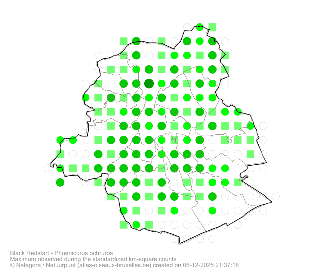 Maximum observed during the standardized km-square counts