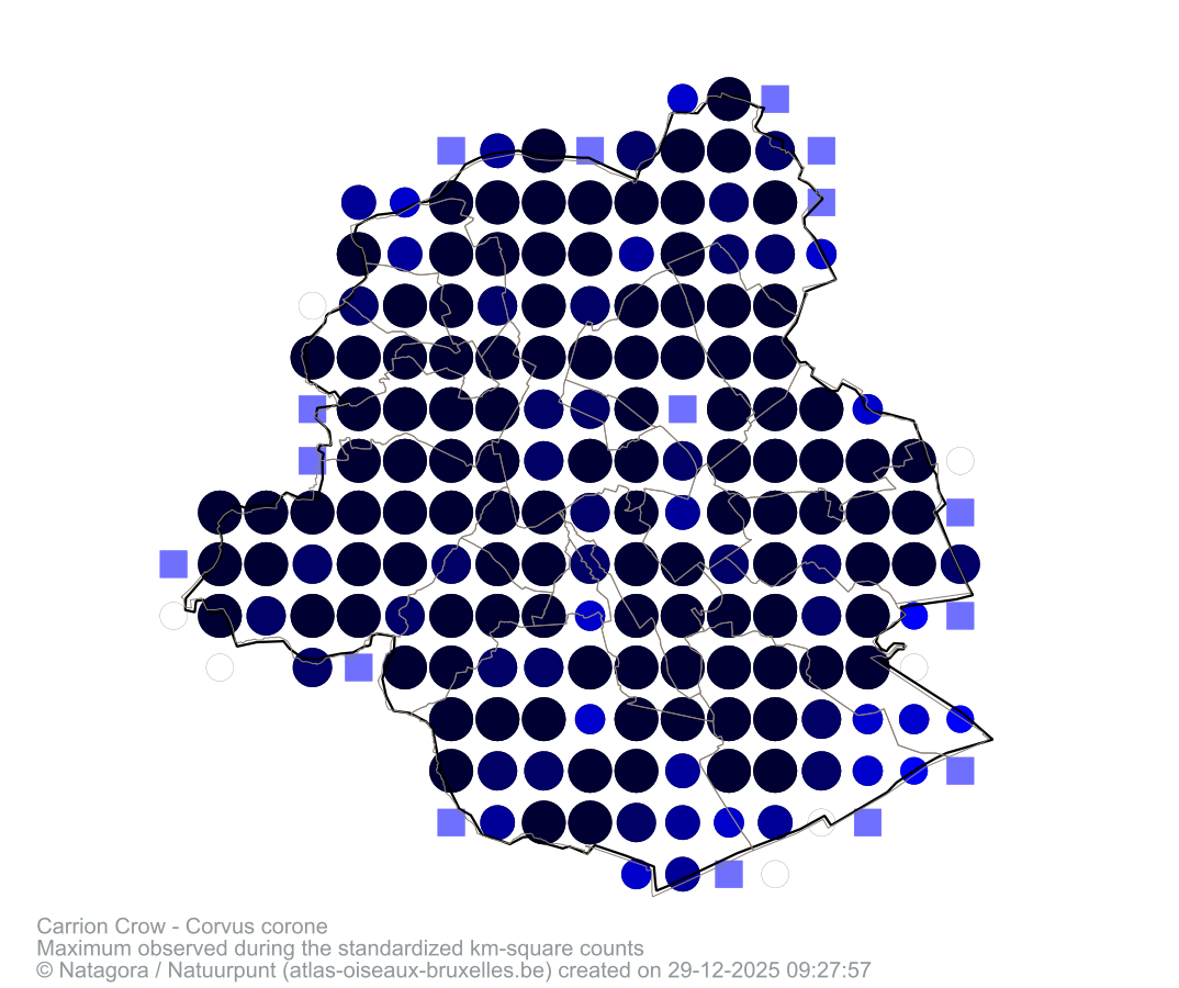 Maximum observed during the standardized km-square counts