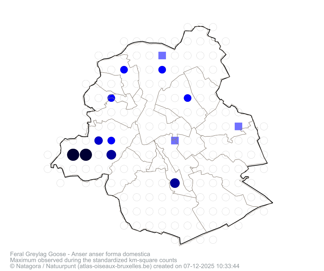 Maximum observed during the standardized km-square counts
