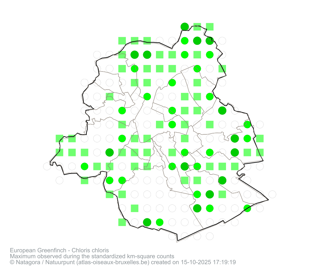 Maximum observed during the standardized km-square counts