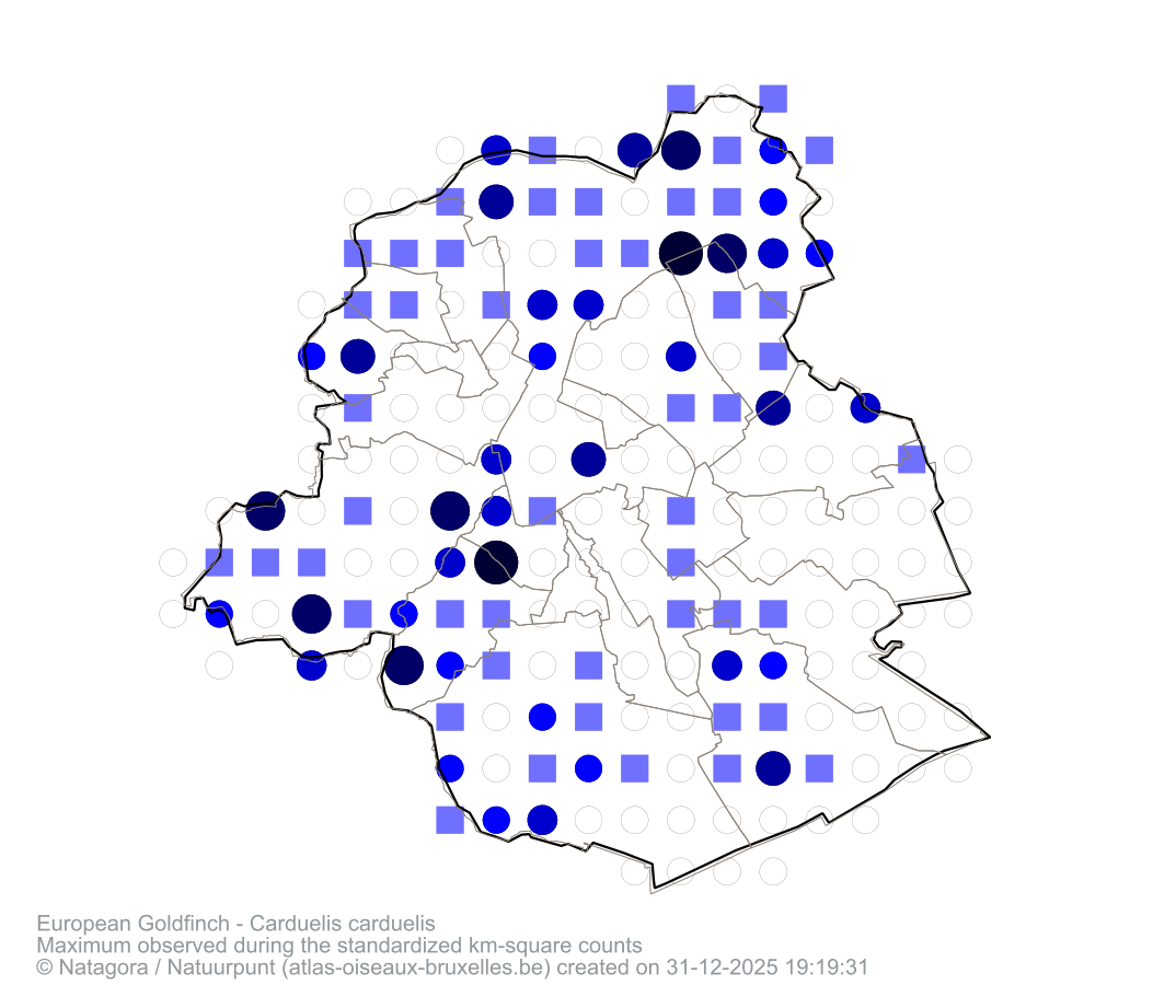 Maximum observed during the standardized km-square counts