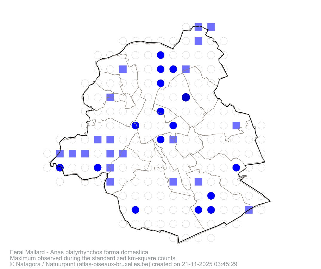 Maximum observed during the standardized km-square counts