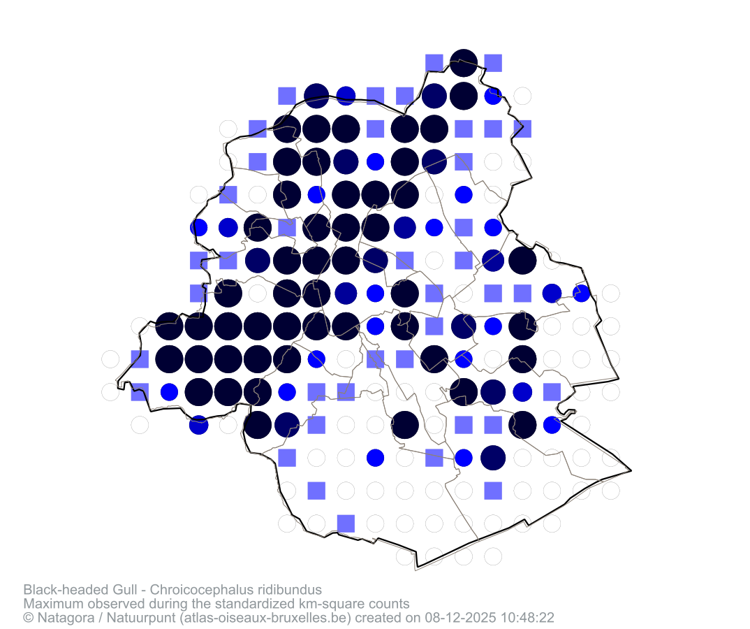 Maximum observed during the standardized km-square counts