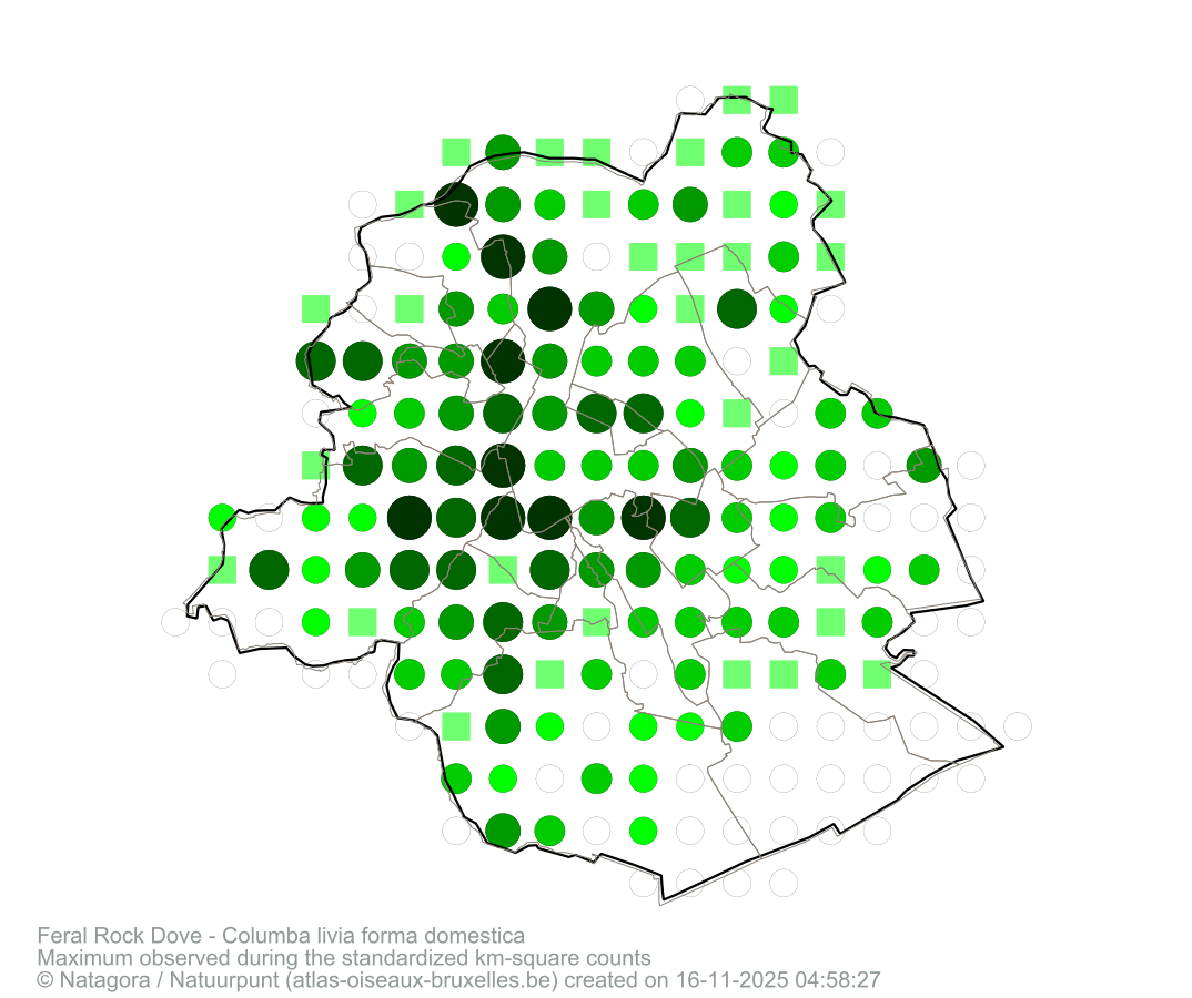 Maximum observed during the standardized km-square counts