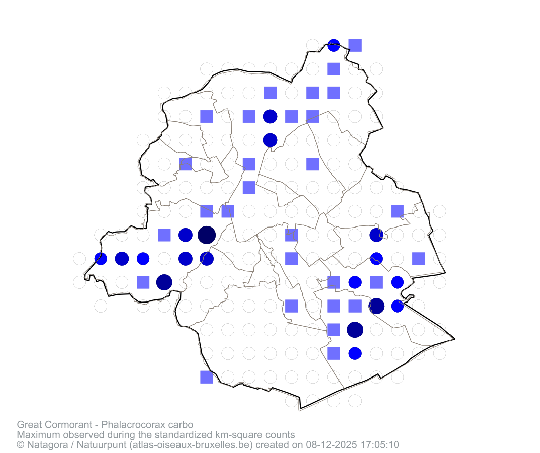 Maximum observed during the standardized km-square counts